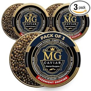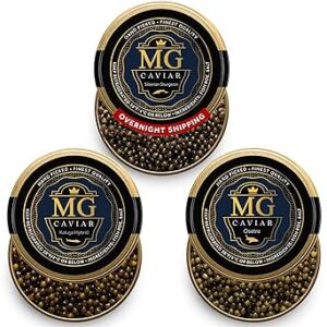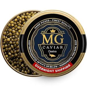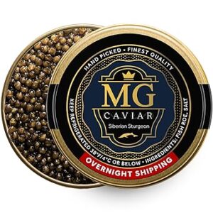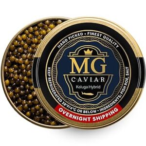 MG Elite Kaluga Hybrid Sturgeon Caviar – Priority Overnight Shipping of Gourmet Grade 1 Malossol Amber Roe Caviar Food – Premium Buttery Fish Eggs – 4-6 Week Shelf Life –