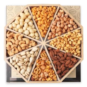 Valentines Gourmet Mixed Nuts Gift Basket in Sleek Bamboo Wood Reusable Platter – Nut Platter (8 Assortments, 2lb)