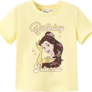 Disney Marvel Minnie Mickey Frozen Stitch Princess Birthday Girl Shirt Boys and Toddler Short-Sleeve Graphic T-Shirt 2-9Y – Princess Belle Yellow, 6-7 Years
