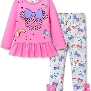Disney Minnie Mouse Frozen Princess Marvel Toddler Girls Clothes Long Sleeve Sweatshirt + Leggings 2pcs Outfits Set 2-6Y – Minnie-hot Pink, 5-6 Years