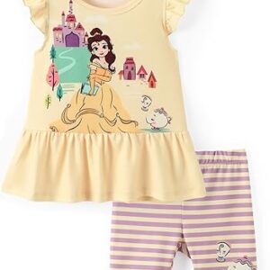 Disney Minnie Mouse Frozen Princess Marvel Toddler Girls Clothes Long Sleeve Sweatshirt + Leggings 2pcs Outfits Set 2-6Y – Princess-belle-yellow, 6-9 Months