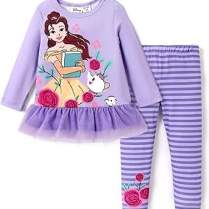 Disney Minnie Mouse Frozen Princess Marvel Toddler Girls Clothes Long Sleeve Sweatshirt + Leggings 2pcs Outfits Set 2-6Y – Princess-belle-purple, 5-6 Years