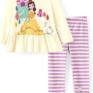 Disney Minnie Mouse Frozen Princess Marvel Toddler Girls Clothes Long Sleeve Sweatshirt + Leggings 2pcs Outfits Set 2-6Y – Princess-belle-yellow, 12-18 Months