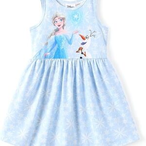 Disney Minnie Mouse Princess Frozen Elsa Stitch Girls Dress Sleeveless & Short Sleeve Casual Summer Clothes Baby to Toddler – Frozen Blue, 3T