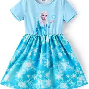 Disney Minnie Mouse Princess Frozen Elsa Stitch Girls Dress Sleeveless & Short Sleeve Casual Summer Clothes Baby to Toddler – Frozen Blue, 4-5T