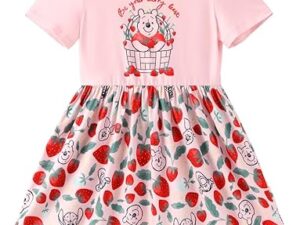 Disney Minnie Mouse Princess Frozen Elsa Stitch Girls Dress Sleeveless & Short Sleeve Casual Summer Clothes Baby to Toddler – Winnie,coral Pink, 4-5T