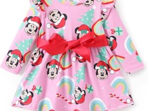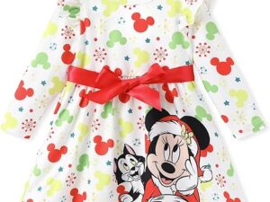Disney Princess Frozen Elsa Minnie Mickey Stitch Ruffle Sleeve Dress A Line Long Sleeve Kids Clothes Baby to Toddler – Multicoloured-mickey, 12-18 Months
