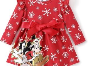 Disney Princess Frozen Elsa Minnie Mickey Stitch Ruffle Sleeve Dress A Line Long Sleeve Kids Clothes Baby to Toddler – Red-mickey, 9-12 Months