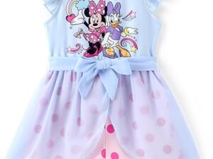 Disney Princess Frozen Elsa Minnie Mouse Stitch Toddler Girl Romper With Skirt Overlay Summer Jumpsuit with Bow 2-6 Years – Minnie&daisy-blue, 3T