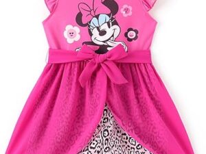 Disney Princess Frozen Elsa Minnie Mouse Stitch Toddler Girl Romper With Skirt Overlay Summer Jumpsuit with Bow 2-6 Years – Minnie-hot Pink, 5-6 Years