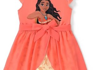 Disney Princess Frozen Elsa Minnie Mouse Stitch Toddler Girl Romper With Skirt Overlay Summer Jumpsuit with Bow 2-6 Years – Moana-orange, 3T