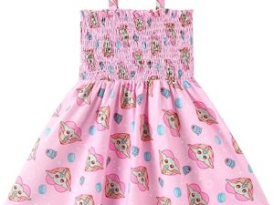 Disney Princess Frozen Elsa Minnie Stitch Toddler Girl Dress Bow Tie Straps Smocked Summer Outfit Birthday Party Clothes 2-9Y – Grogu,pink, 8-9 Years