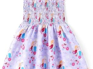 Disney Princess Frozen Elsa Minnie Stitch Toddler Girl Dress Bow Tie Straps Smocked Summer Outfit Birthday Party Clothes 2-9Y – Frozen,purple, 6-7 Years