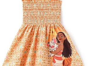 Disney Princess Frozen Elsa Minnie Stitch Toddler Girl Dress Bow Tie Straps Smocked Summer Outfit Birthday Party Clothes 2-9Y – Moana,orange, 5-6 Years