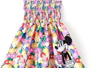 Disney Princess Frozen Elsa Minnie Stitch Toddler Girl Dress Bow Tie Straps Smocked Summer Outfit Birthday Party Clothes 2-9Y – Minnie,multi-color, 8-9 Years