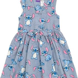Disney Floral Chambray Skater Dress Newborn to Big Kid Sizes – Blue / Stitch, 7-8
