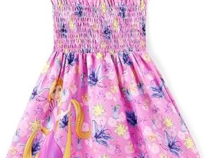 Disney Princess Frozen Elsa Minnie Stitch Toddler Girl Dress Bow Tie Straps Smocked Summer Outfit Birthday Party Clothes 2-9Y – Rapunzel,lavender, 6-7 Years