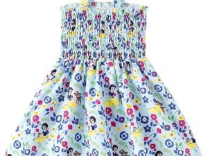 Disney Princess Frozen Elsa Minnie Stitch Toddler Girl Dress Bow Tie Straps Smocked Summer Outfit Birthday Party Clothes 2-9Y – Snowwhite,light Blue, 3-4T