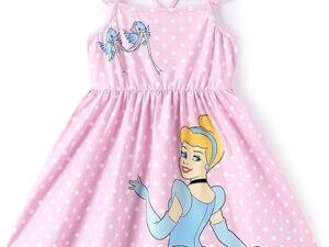 Disney Princess Minnie Mouse Frozen Elsa Girls Dress Ruffle Sleeveless Criss Cross Sundress Summer Clothes Baby to Toddler – Cinderella,pink, 4-5T