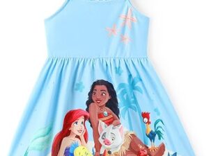 Disney Princess Minnie Mouse Frozen Elsa Girls Dress Ruffle Sleeveless Criss Cross Sundress Summer Clothes Baby to Toddler – Princess,blue, 4-5T
