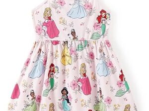 Disney Princess Minnie Mouse Frozen Elsa Girls Dress Ruffle Sleeveless Criss Cross Sundress Summer Clothes Baby to Toddler – Princess,light Pink, 4-5T