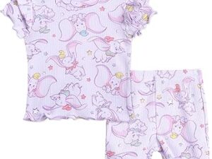 Disney Ribbed Peplum T-Shirt and Bike Shorts Outfit Set Newborn to Big Kid Sizes – Dumbo, Lavender, 6-9 Months