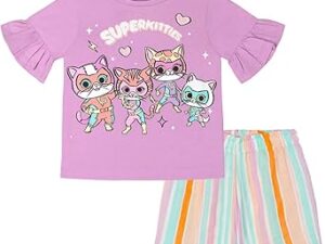 Disney T-Shirt and Gauze Shorts Outfit Set Infant to Big Kid Sizes – Lavender Blush, Super Kitties, 7-8