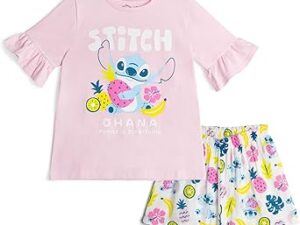 Disney T-Shirt and Gauze Shorts Outfit Set Infant to Big Kid Sizes – Lavender Pink, Stitch, 14-16