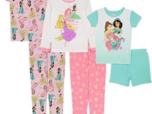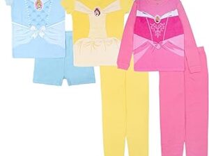 Disney unisex-child 6-piece Snug-fit Cotton Pajama Set – Cinderella Belle Aurora, 6