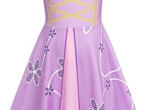 Jurebecia Girls Nightgowns Princess Pajamas Nightdress for Toddler Kids Sleepwear Flutter Short Sleeves Nightie Dress – Purple, 7-8 Years