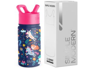 Simple Modern Kids Summit Water Bottle with Straw Lid – -Unicorn Rainbows, 14 Ounces