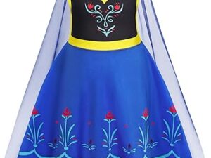 WonderBabe Princess Dress With Cape Girls Christmas Birthday Party Cosplay Costume Toddler Ruffle Sleeve Fancy Outfit Gift – Dark Blue, 5-6 Years