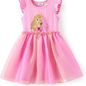 Disney Frozen Elsa Princess Cinderella Ariel Jasmine Rapunzel Baby/Toddler Dress – Aurora-pink, 6-7 Years
