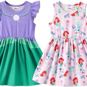 Disney Frozen Elsa Princess Minnie Mouse Stitch Toddler Girl Dresses 2 Pack Long Ruffle Sleeve Costume Set Outfit 2-13 Years – Ariel,color Block, 3T