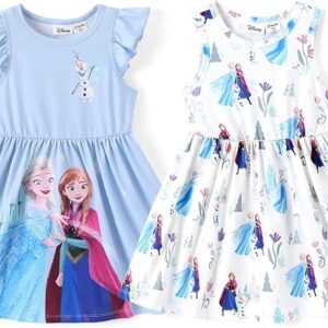 Disney Frozen Elsa Princess Minnie Mouse Stitch Toddler Girl Dresses 2 Pack Long Ruffle Sleeve Costume Set Outfit 2-13 Years – Frozen,bluewhite, 5-6 Years