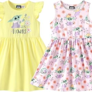 Disney Frozen Elsa Princess Minnie Mouse Stitch Toddler Girl Dresses 2 Pack Long Ruffle Sleeve Costume Set Outfit 2-13 Years – Grogu,pale Yellow, 3-4T