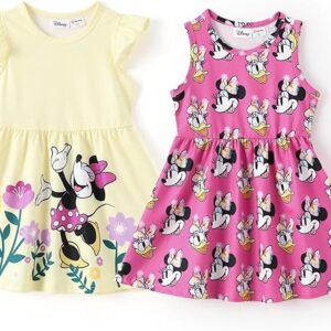 Disney Frozen Elsa Princess Minnie Mouse Stitch Toddler Girl Dresses 2 Pack Long Ruffle Sleeve Costume Set Outfit 2-13 Years – Minnie Mouse,pale Yellow, 3T