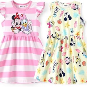 Disney Frozen Elsa Princess Minnie Mouse Stitch Toddler Girl Dresses 2 Pack Long Ruffle Sleeve Costume Set Outfit 2-13 Years – Minnie Mouse,dark Pink, 2T