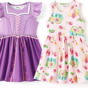 Disney Frozen Elsa Princess Minnie Mouse Stitch Toddler Girl Dresses 2 Pack Long Ruffle Sleeve Costume Set Outfit 2-13 Years – Rapunzel,purple, 4-5T