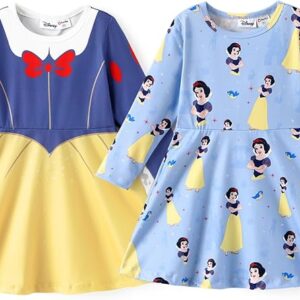 Disney Frozen Elsa Princess Minnie Mouse Stitch Toddler Girl Dresses 2 Pack Long Ruffle Sleeve Costume Set Outfit 2-13 Years – Snowwhite,yellow, 5-6 Years