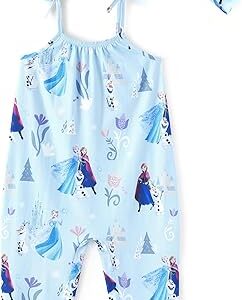 Disney Frozen Elsa Princess Minnie Stitch Marie Girls Romper with Bow Tie Strap and Headband Cute Jumpsuit for Baby & Toddler – Frozen, 3-4T