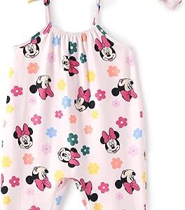 Disney Frozen Elsa Princess Minnie Stitch Marie Girls Romper with Bow Tie Strap and Headband Cute Jumpsuit for Baby & Toddler – Minnie Mouse, 12-18 Months