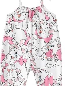 Disney Frozen Elsa Princess Minnie Stitch Marie Girls Romper with Bow Tie Strap and Headband Cute Jumpsuit for Baby & Toddler – Marie, 4-5T