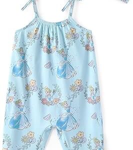 Disney Frozen Elsa Princess Minnie Stitch Marie Girls Romper with Bow Tie Strap and Headband Cute Jumpsuit for Baby & Toddler – Princess Cinderella, 12-18 Months