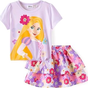 Disney Frozen Elsa Stitch Minnie Princess Toddler Girls’ T-Shirt & Double Ruffle Skirt 2 Piece Outfit Summer Clothes Set 2-9Y – Rapunzel-purple, 6-7 Years
