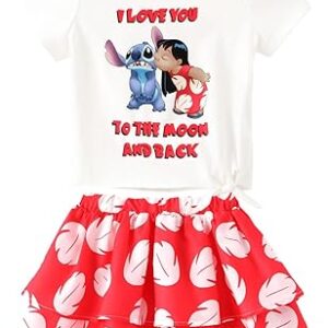 Disney Frozen Elsa Stitch Minnie Princess Toddler Girls’ T-Shirt & Double Ruffle Skirt 2 Piece Outfit Summer Clothes Set 2-9Y – Stitch-white, 4-5T
