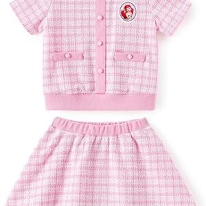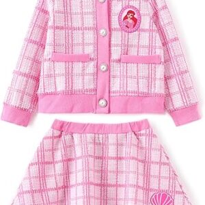 Disney Frozen Elsa Stitch Princess Moana Minnie Toddler Girl 2 Piece Outfit Kid Pearl Button Knit Top & Tweed Skirt Set 2-13Y – Ariel , Pink, 4-5T