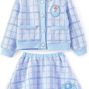 Disney Frozen Elsa Stitch Princess Moana Minnie Toddler Girl 2 Piece Outfit Kid Pearl Button Knit Top & Tweed Skirt Set 2-13Y – Cinderella , Blue, 4-5T