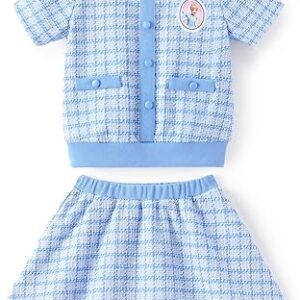 Disney Frozen Elsa Stitch Princess Moana Minnie Toddler Girl 2 Piece Outfit Kid Pearl Button Knit Top & Tweed Skirt Set 2-13Y – Cinderella-blue, 2T