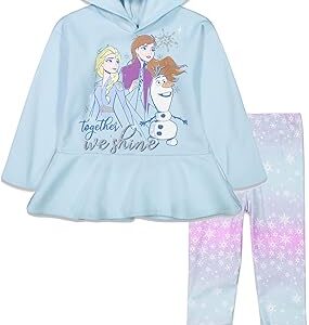 Disney Frozen Girls Fleece Ruffled Hoodie and Leggings Outfit Set Toddler to Big Kid Sizes – Frozen, 3T